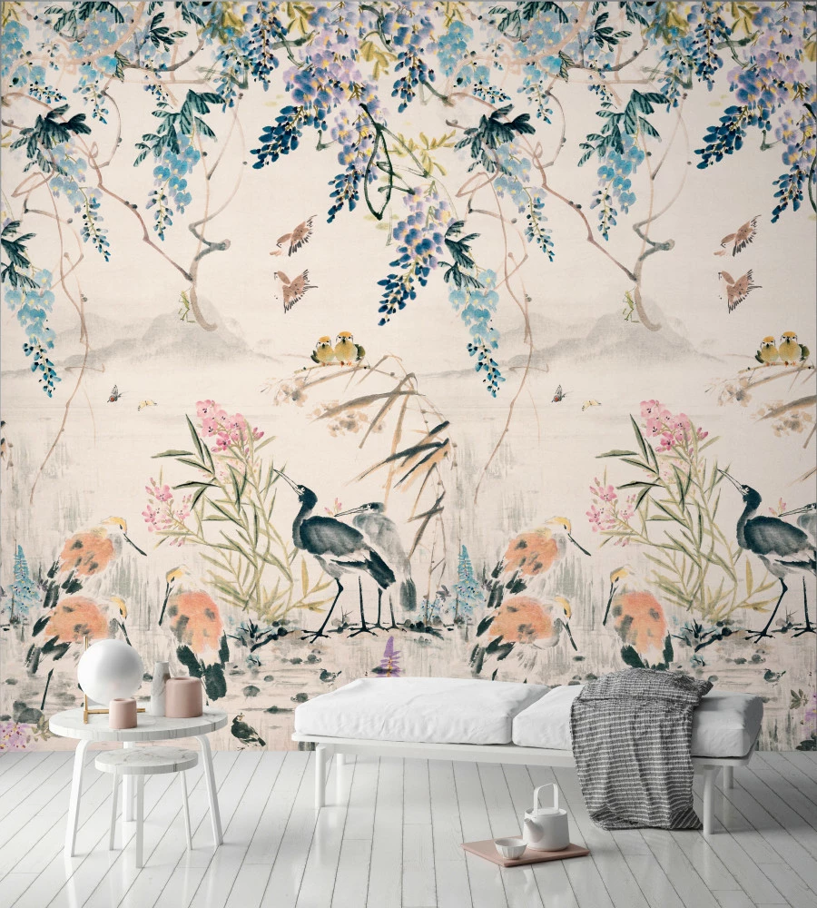 Vlies Fototapete A52301 aus der Kollektion Eine Rolle Ein Motiv II von Grandeco mit japanischem Gartenmotiv in rosa blau lila