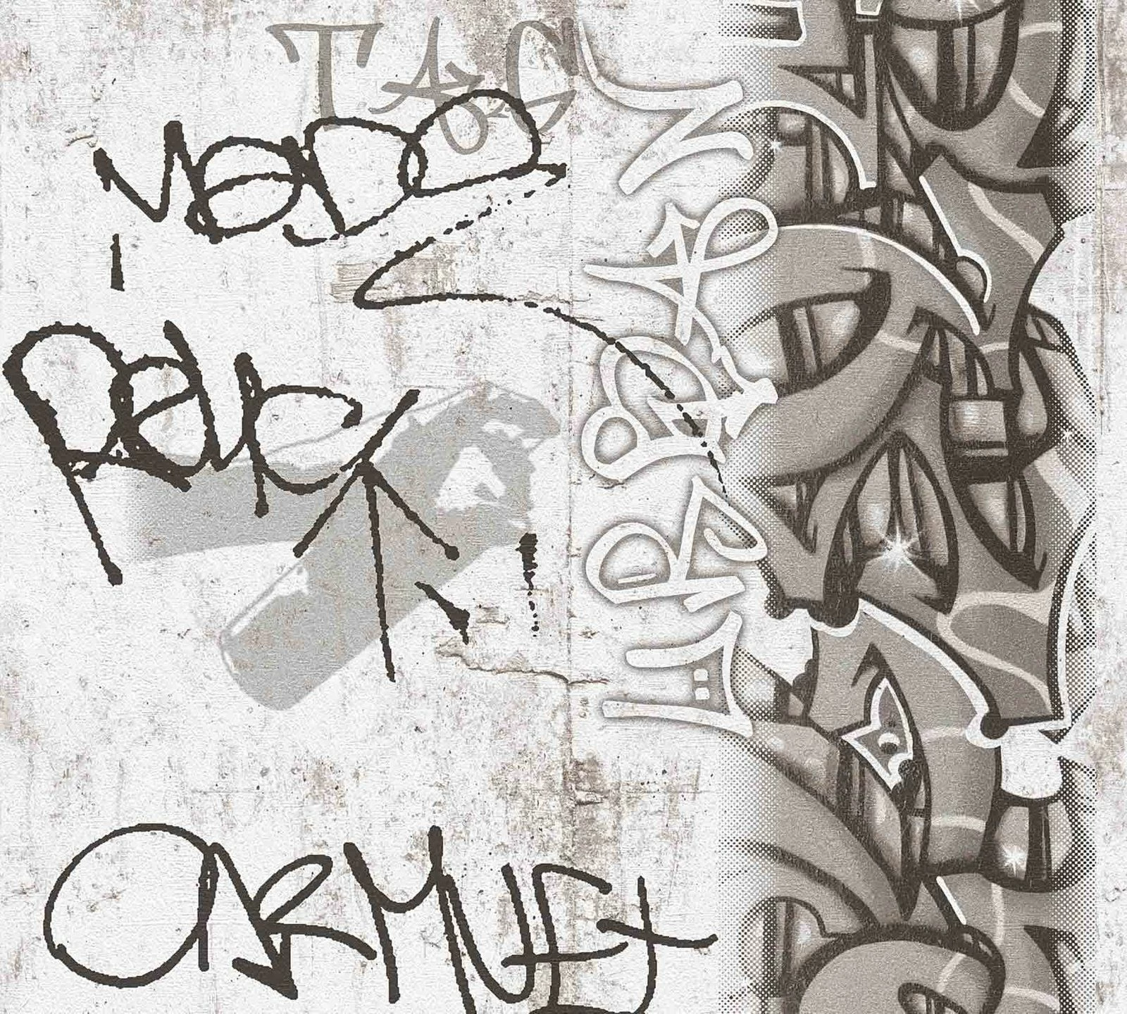 Kindertapete Beton Graffiti grau weiß schwarz Boys & Girls 6 A.S. Création 36986-3 | 369863