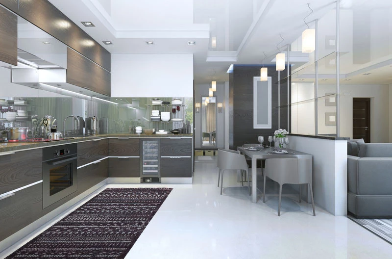 Werten Sie Ihren Küchenboden mit dem Küchenläufer €žVintage Kelim€œ dekorativ auf! Der Teppich im modernen Ethnolook setzt einen tollen Eye-Catcher und bringt somit eine schöne Abwechslung in das Küchenambiente. Der rutschhemmende Gummirücken des Küchenteppichs ist besonders trittfest und garantiert, dass der Läufer rutschfest und faltenfrei vor Ihrer Küchenzeile liegt. Die Teppichoberfläche besteht aus einem strapazierfähigem Velours, der bis zu 30°C waschbar ist. Die Gesamthöhe des Teppichläufers beträgt ca. 5 mm. Aus diesem Grund kann der Teppichläufer auch unter Türen gelegt werden, ohne diese zu blockieren (Messen Sie bitte vor dem Kauf den Abstand zwischen Tür und Bodenbelag).