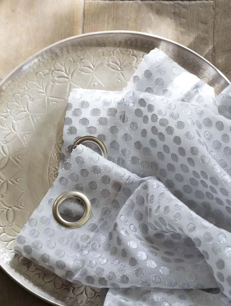 Der transparente Vorhang MILLEPUNTI von rasch home ist eine ganz besondere Fensterdekoration. Der Stoff hat einen auffallenden Glanz durch den großflächigen Einsatz von Lurexgarn und bekommt so eine sehr luxuriöse und ausgefallene Wirkung. Das Design mit Punktmusterung in aufwändiger Scherli-Technik, aus hochwertigem Jacquard-Gewebe, verleiht Ihrem Wohnraum eine besondere Atmosphäre. Der metallisch schimmernde Ösenschal aus wunderbar feinem Garn ist in zwei trendigen Farbstellungen erhältlich.