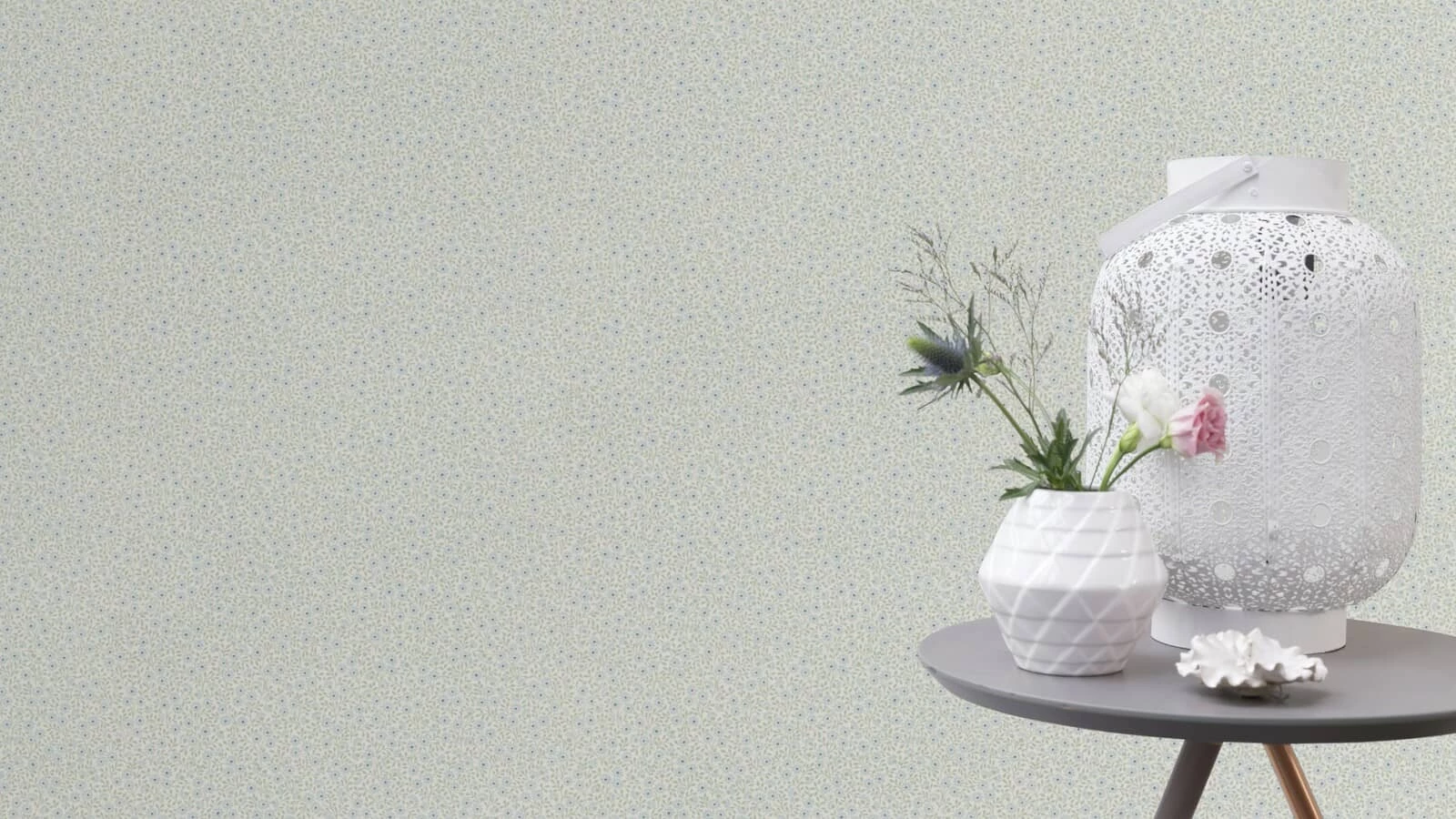Rein pflanzlich: mit dieser frisch gepflückten Vliestapete rasch kann der Tag kommen. Streublümchen in Pastellblau und zart grüne Blättchen haben sich ganz stiel-voll ausgebreitet, um in jeden Winkel gute Laune einziehen zu lassen. Klappt auch ohne grünen Daumen!<