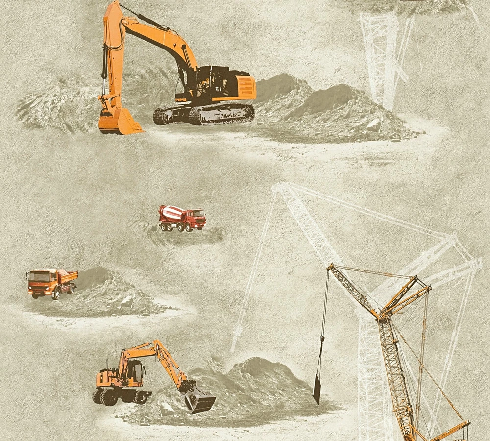 Tapete Kinder Bagger Kran Truck beige orange 35870-1
