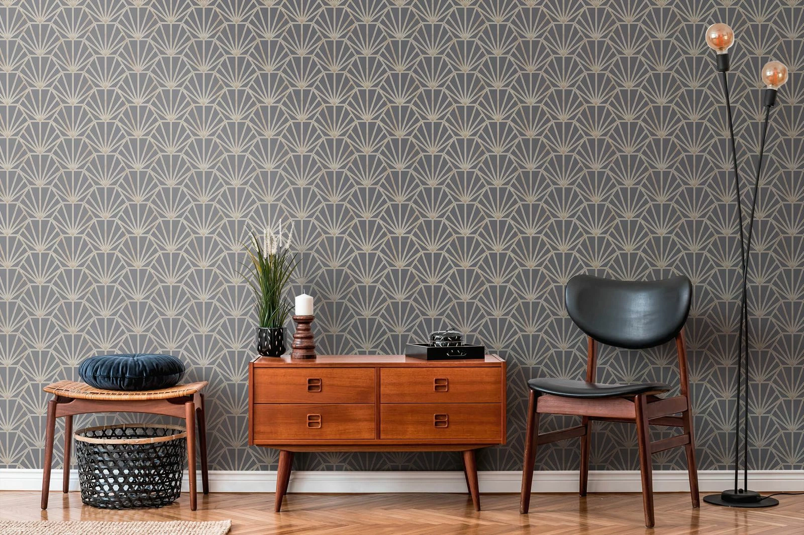 Der Designer Daniel Hechter hat mit AS Creation seine 6. Kollektion entworfen. Die ausdrucksstarke Tapete in grau und weiß und gold ist ein optisches Highlight und hat zudem sehr gute Materialeigenschaften.