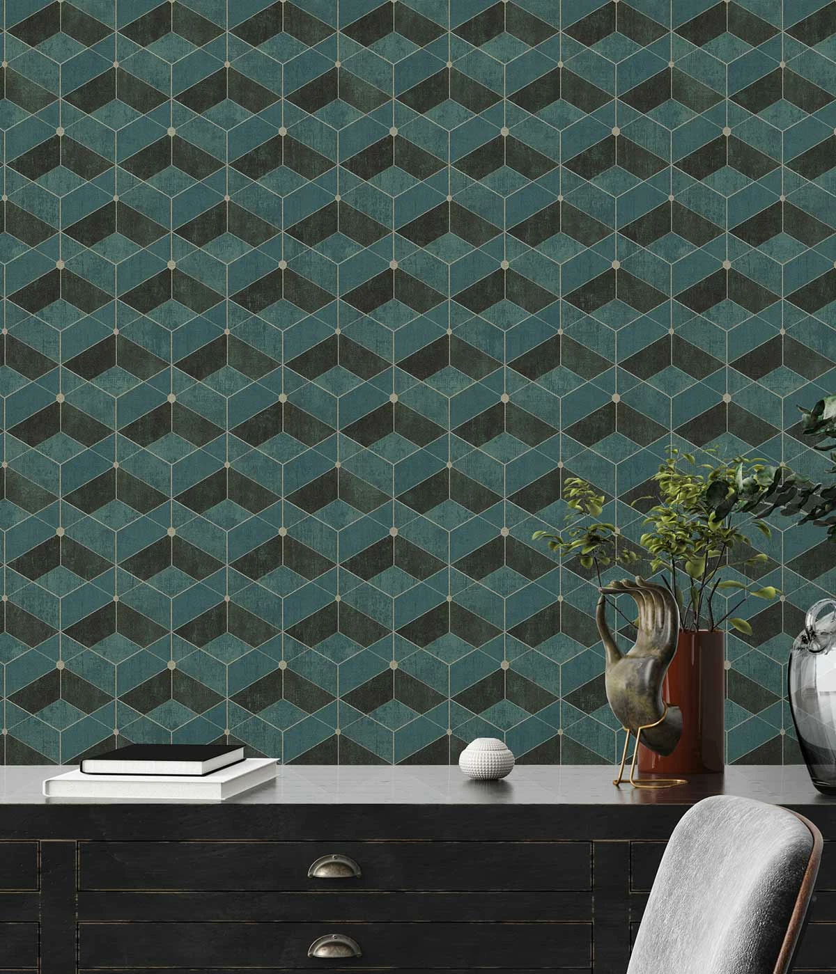 Edle Wanddekoration in jedem deiner Räume – Die Tapeten aus der Kollektion Titanium von livingwalls versprechen ein luxuriöses Gesamtbild und bestehen aus hochqualitativen Materialien. Mit der Vliestapete 38202-3 mit geometrischen Formen und 3D-Effekt in grün, schwarz, gold und mit Glanz-Akzenten erwirbst du eine exklusive Wandverzierung, die deine Gäste zum Staunen bringen wird.