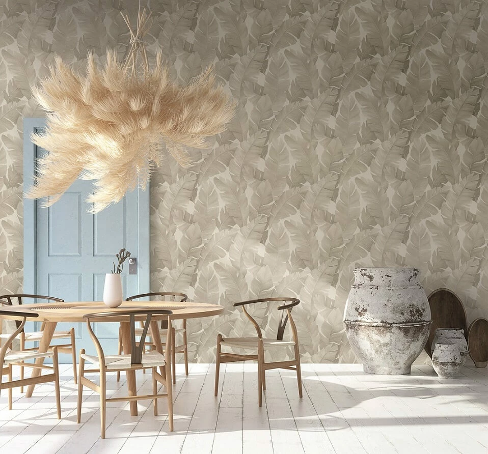 Behaglichkeit, Heimeligkeit – Marburg präsentiert seine Tapeten-Kollektion „Avalon“ in schlichen und milden Tönen mit natürlichen floralen Mustern. Die Vliestapete 31625 wertet mit ihren großen Bananenblättern in beige und creme mit Metallic-Effekt jedes Zuhause auf und lädt direkt zum Relaxen ein. Die Markentapete besticht zudem mit ihren hervorragenden Eigenschaften!