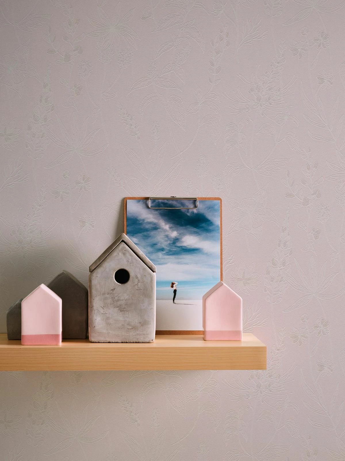 Vliestapete Floral Blätter rosa weiß leichter Glitzer Jette livingwalls 373633 | 37363-3