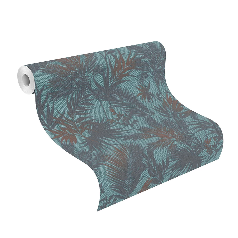 Tapete Vlies Dschungel Blätter türkis-blau anthrazit Rasch Kalahari 704143