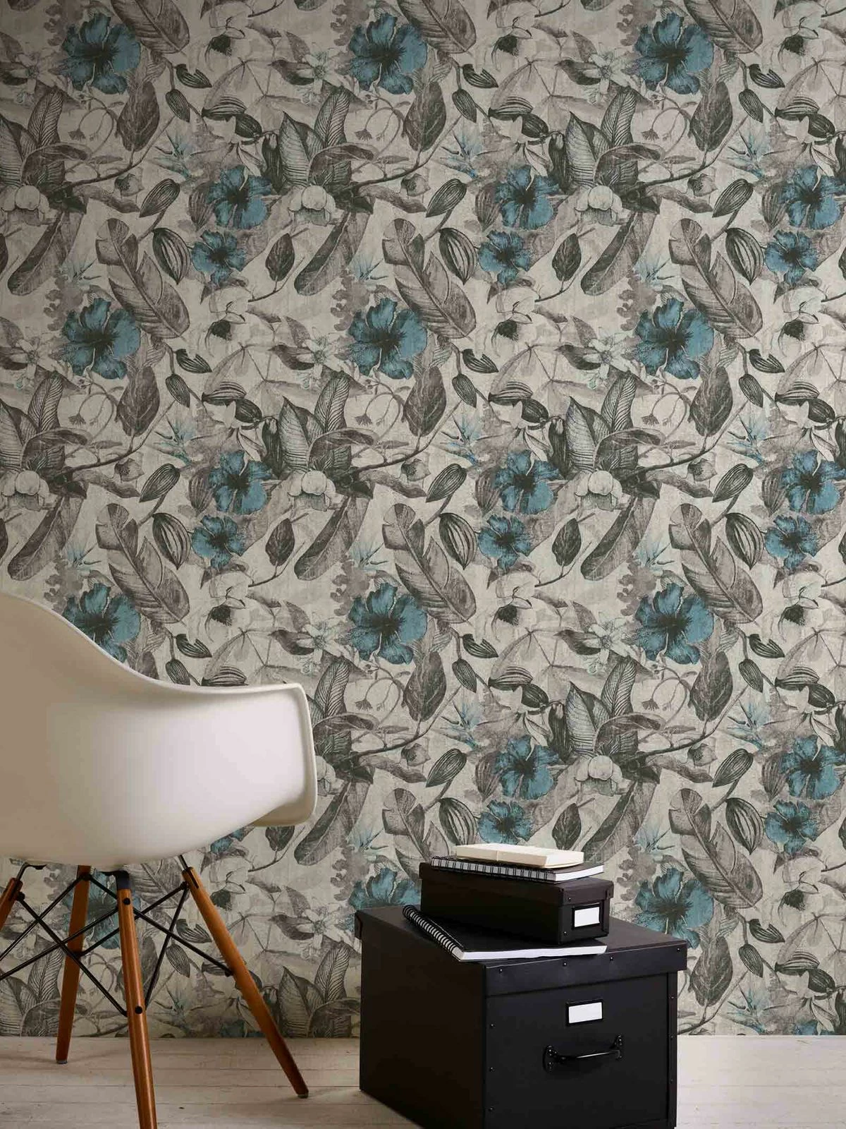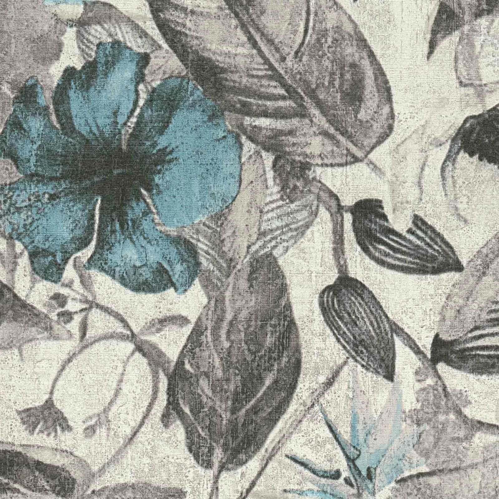 Tapete Vlies Dschungel Blumen grau-weiß blau AS Creation Greenery 37216-2 | 372162
