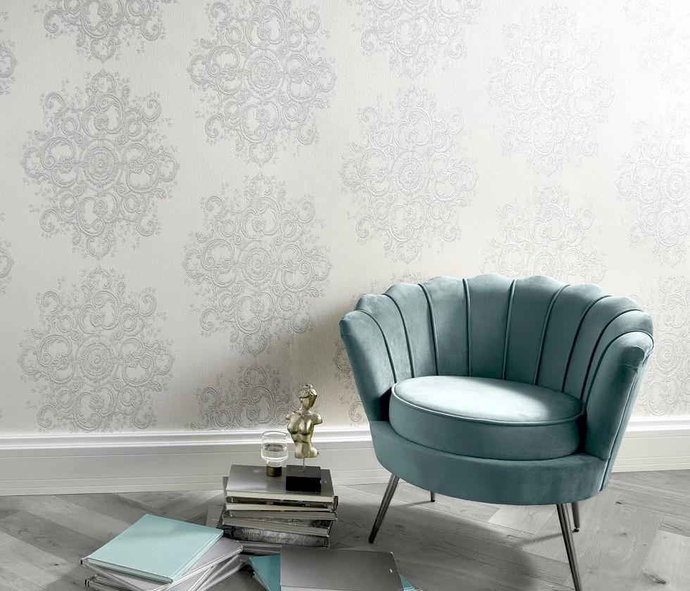 Edel und doch verspielt kommen die Muster aus der Vliestapeten-Kollektion „Elle Decoration“ von Erismann daher. Die barocken Ornamente in weiß, silber und Glitzer der Tapete 10154-31 werten im Nu jeden Wohnraum auf und sorgen für atemberaubende Hingucker.
