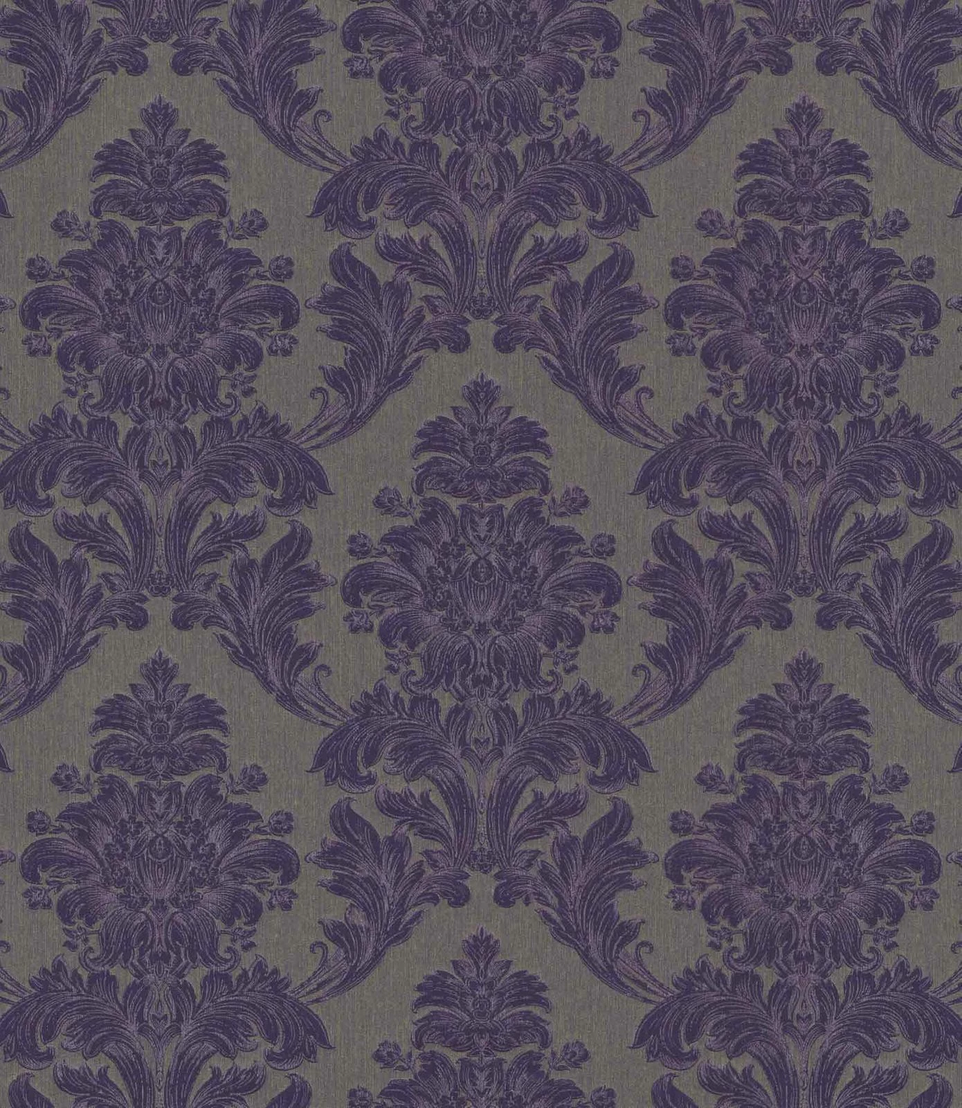 Textiltapete Ornament Floral lila grüngrau Glanz „Mondaine“ Rasch Textil 086163