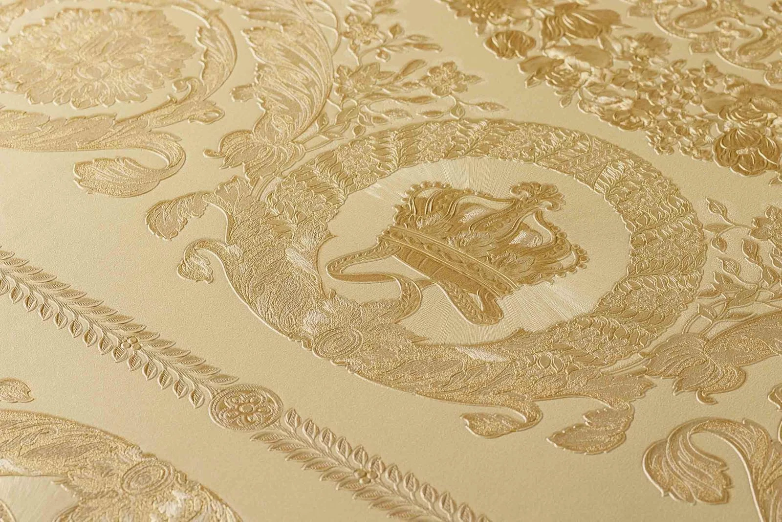 Versace Home IV Vinyltapete Große Kacheln Barock beige gold creme Metallic 370554 | 37055-4