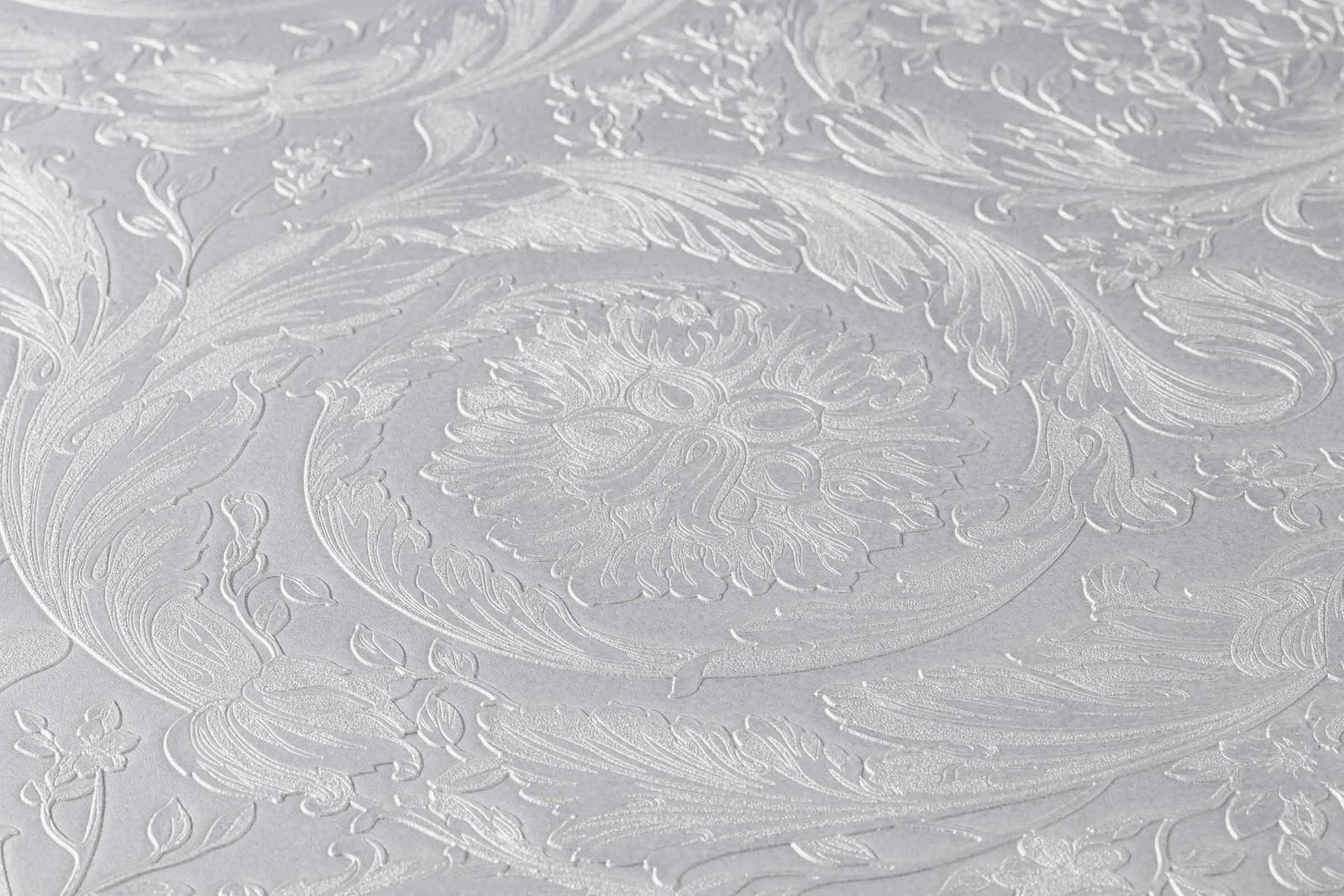 Versace Home IV Vinyltapete Blumenornament Rund silber-grau Metallic 366924 | 36692-4