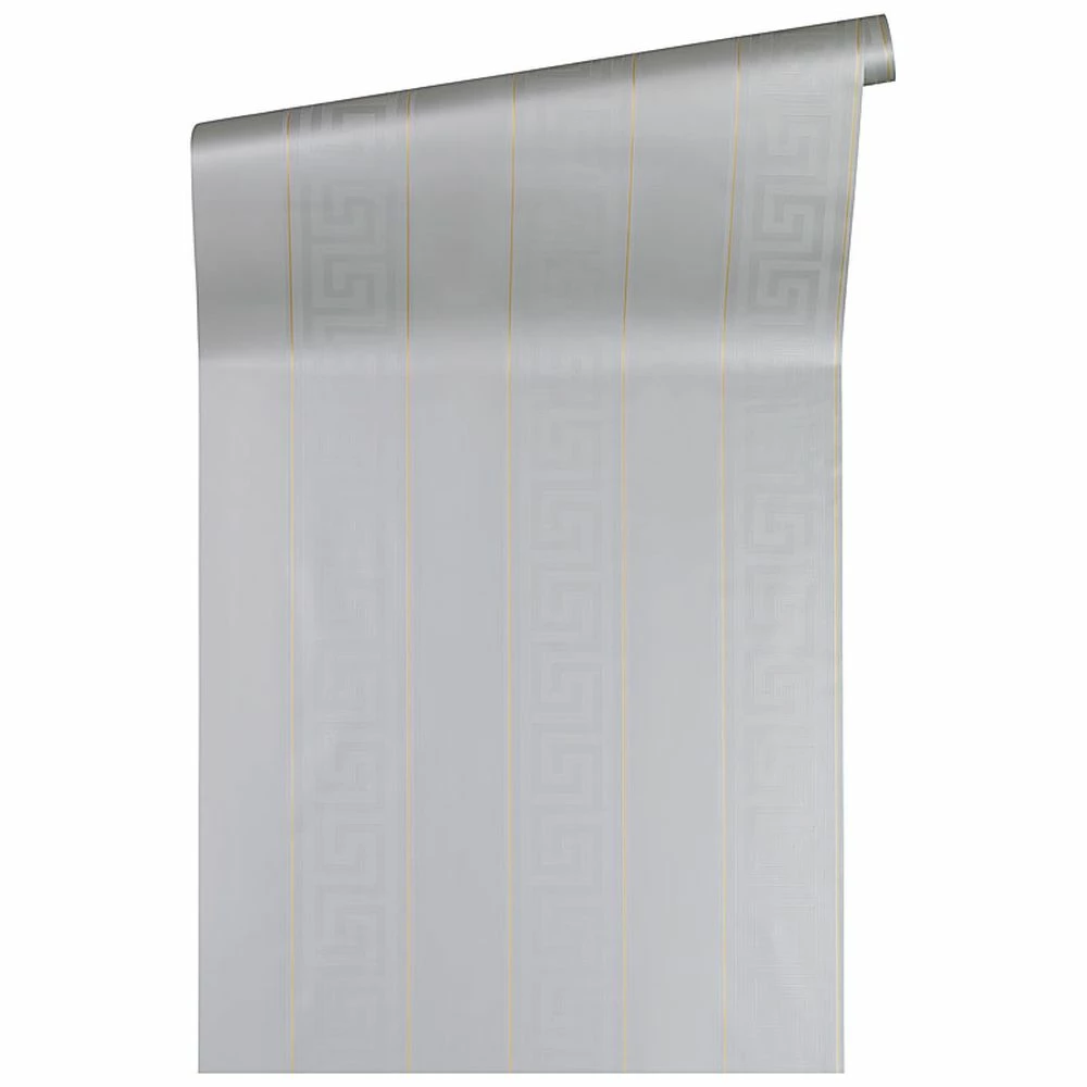 Die Einrichtungsmarke Versace Home steht für exklusives und hochwertiges Interiordesign. Dabei erfindet sich die Designermarke mit ihren glamourösen Kreationen immer wieder neu und setzt damit unangefochtene Maßstäbe im Einrichtungsbereich. Mit der dritten Auflage der erfolgreichen Versace Home Tapetenkollektion setzt die Luxusmarke erneut ausdrucksstarke Akzente im Wohnbereich. Inspiriert von Prunk und Eleganz sowie der griechischen Mythologie verzaubert Sie die Versace Vliestapete 93524-5, aus der Themenreihe Greek, mit einem antiken Ambiente. Dieses Ambiente wird durch das kräftige Kolorit aus grau und gold Glanz sowie der aufregenden Rillenstruktur stilvoll in Szene gesetzt. Die Kombination aus Farbe und Struktur führt letztendlich dazu, dass das Streifenmuster mit griechischen Elementen zum Hauptaugenmerk Ihrer Wandgestaltung wird.