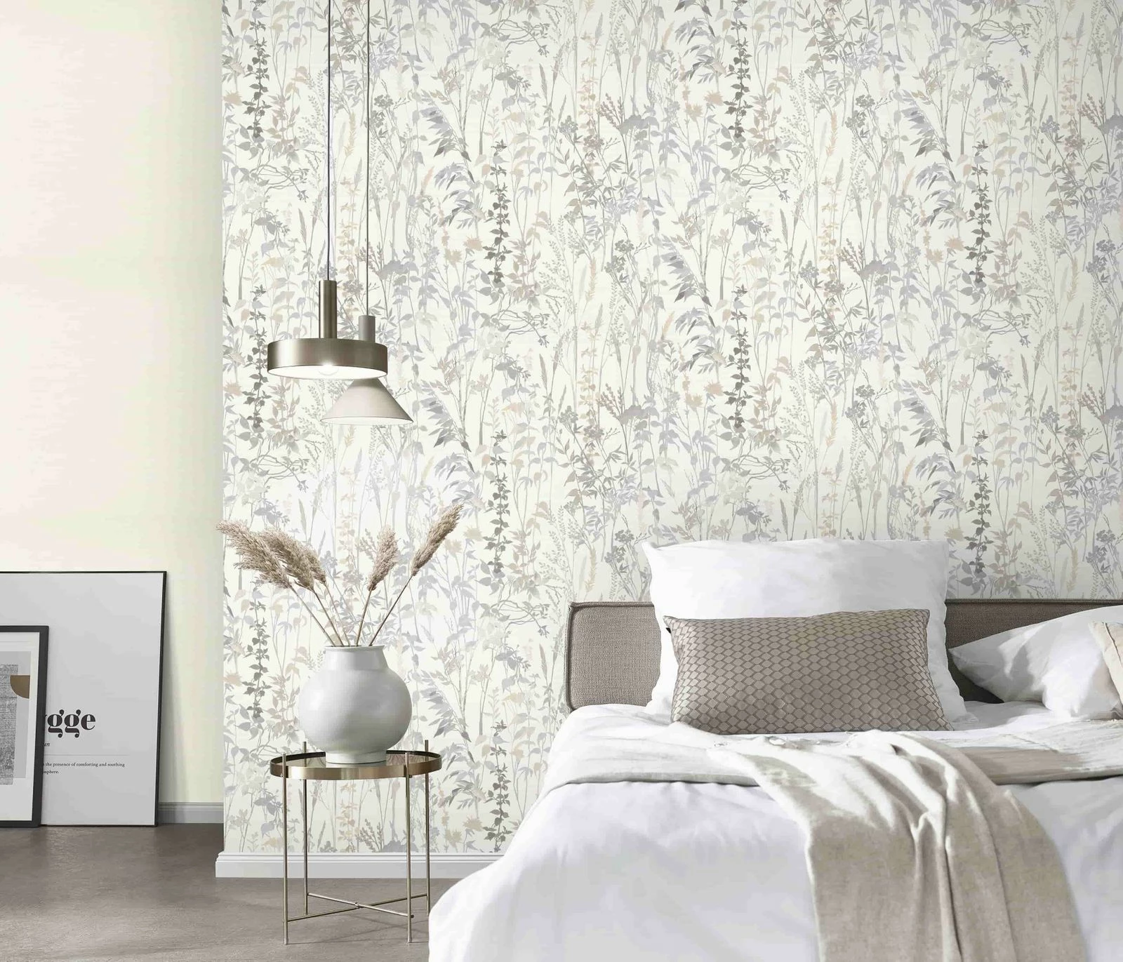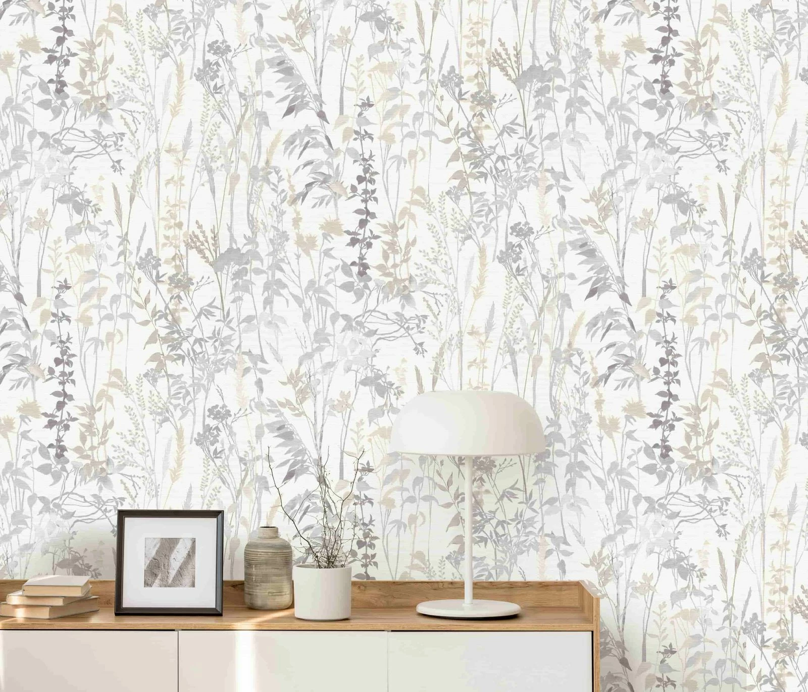 Ob Tapeten mit zarten Gräsern, üppigen Blattmotiven oder auch schlichte Uni-Tapeten, all das finden Sie in der Kollektion Casual Chic von Erismann. Inspiriert von den Formen und Farben der Natur finden Sie hier Vliestapeten von lässiger Schönheit in eleganter Optik in zarten und kräftigen Farben, sowie mit Metallic-Effekten. Die Vliestapete 10258-14 zeigt ein von einer Wildblumenwiese inspiriertes Muster mit Zweigen und Gräsern in Weiß- und Grautönen. Entdecken Sie auch die weiteren Tapeten der Casual Chic Kollektion von Erismann in unserem Shop.