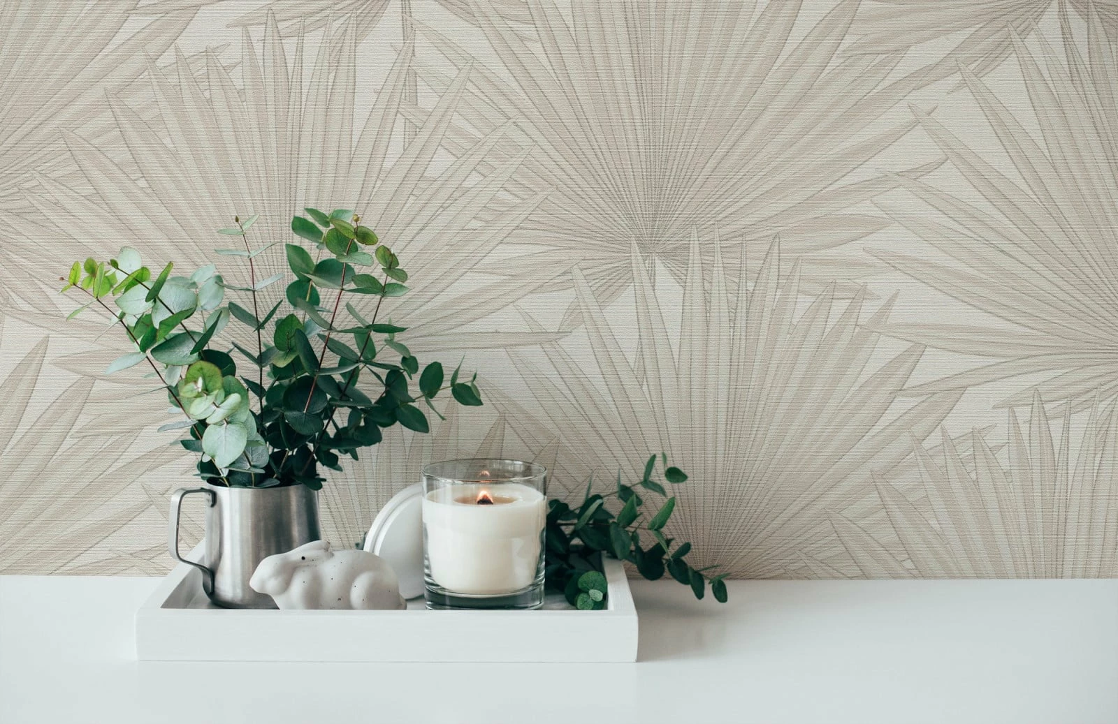 Vliestapete 39090-2 aus der Kollektion Antigua von A.S. Creation mit Palmblatt-Muster