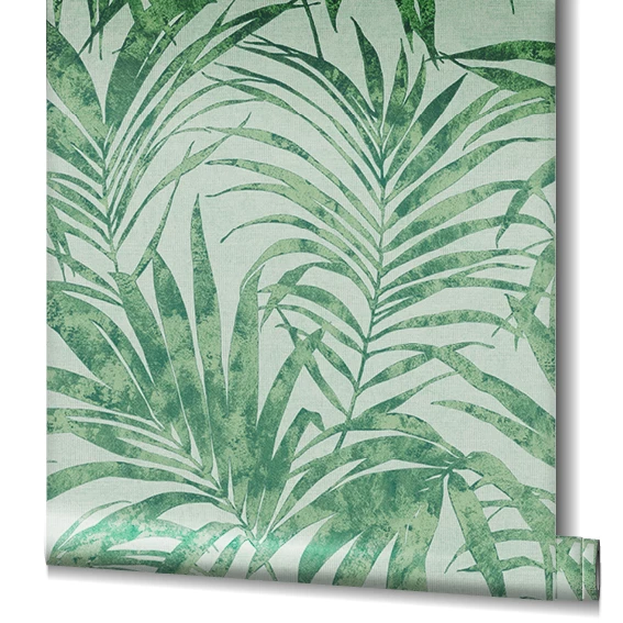Vliestapete 82273 aus der Kollektion Ivy von Novamur in grün mit Glitzer mit Farnmuster