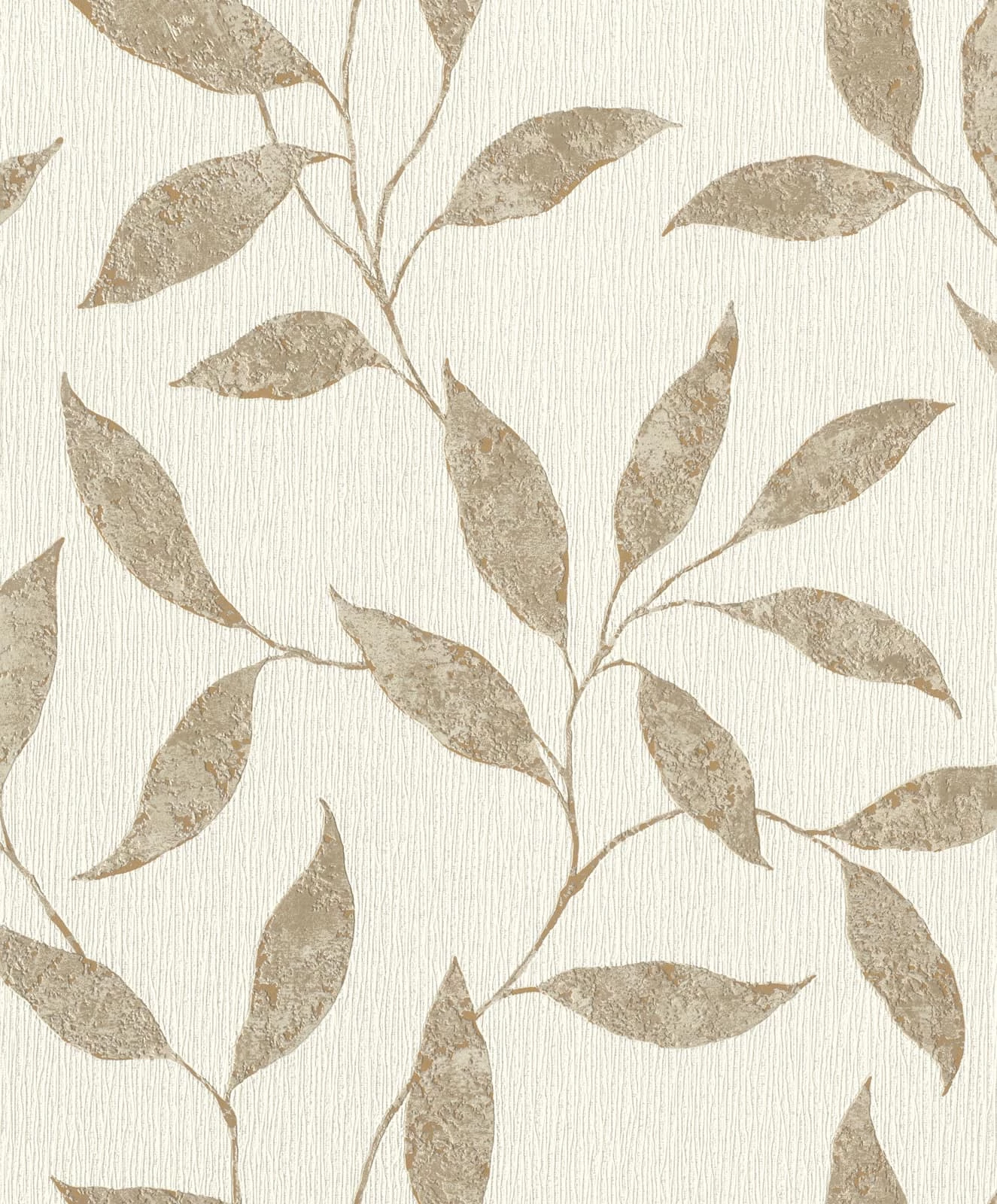 Rasch Vliestapete Blätter Motiv Beige Braun Bronze Metallic 651201